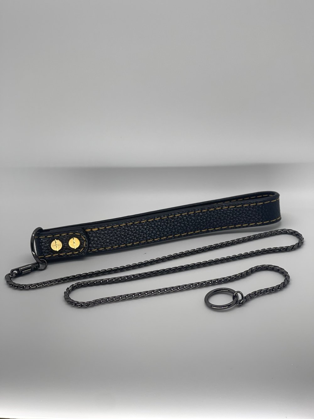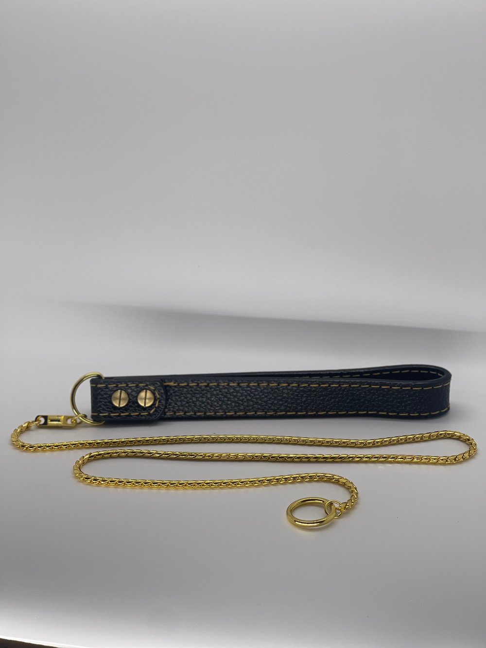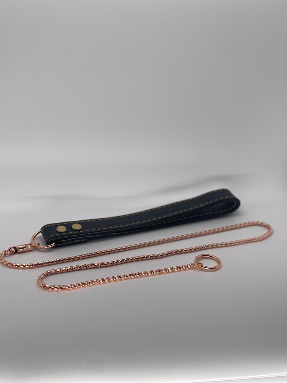Introducing our Show Leads, available in 39 inches or 47 inches. These show leads consist of a bullet-style link attached to a loop on one end and a handle on the other. Not only is this a go-to accessory for most dog shows, it serves as a great training collar as well. These show leads are also available in gold, black, or rose gold.
